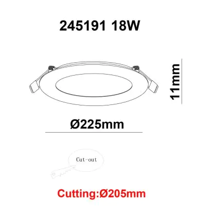 | Fabrikantnaam | White label LED Downlight Round UltraSlim 18W 1450lm 840 CutoutØ205mm FrameØ220mm | |