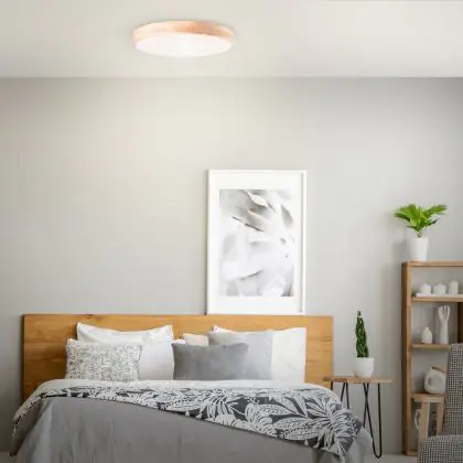 Beschrijving Brilliant Slimline Plafondlamp Metaal Hout Kunststof Hout Wit 34W 3800lm - 830-865 CCT | 500mm - Afstandsbediening Dimbaar