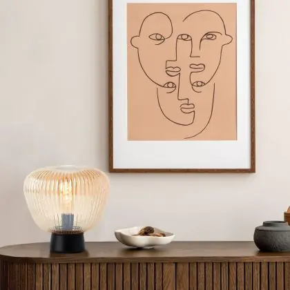 Beschrijving Brilliant Tafellamp Kaizen Glas Metaal Zwart Beige | 250mm - Geschikt voor 1x E27