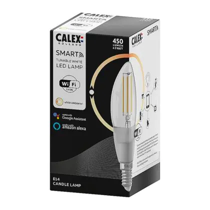 Je kunt ook meerdere Calex smart lampen koppelen aan onder meer een Google Home of Amazon Alexa apparaat. Hierdoor wordt het mogelijk om Calex verlichting met jouw eigen stemgeluid te bedienen. Door het geven van eenvoudige instructies als; ‘Hey Google, dim de lamp boven de tv’, heb je dit al binnen no-time geregeld! Tevens kun je deze kaarsvormige E14 Calex Smart verlichting bedienen via een officiële Calex Smart afstandsbediening. Deze Calex lamp werkt ook op een wandschakelaar, maar niet op een dimmerschakelaar. Hou daar rekening mee. Ben je op zoek naar Smart verlichting met een andere fitting of in een andere vorm? Klik dan hier om ons volledige assortiment te bekijken!