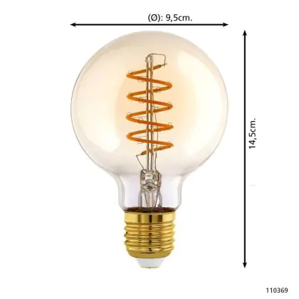 Beschrijving Eglo LED Globe E27 Filament Amber 8W 806lm - 827 Zeer Warm Wit | Dimbaar - Vervangt 60W