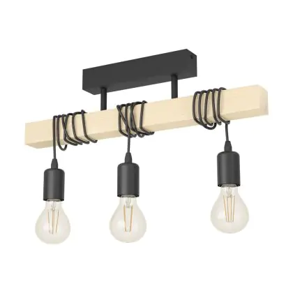 Eglo Plafondlamp Townshend Staal Hout Zwart Bruin | IP20 - Geschikt voor 3x E27