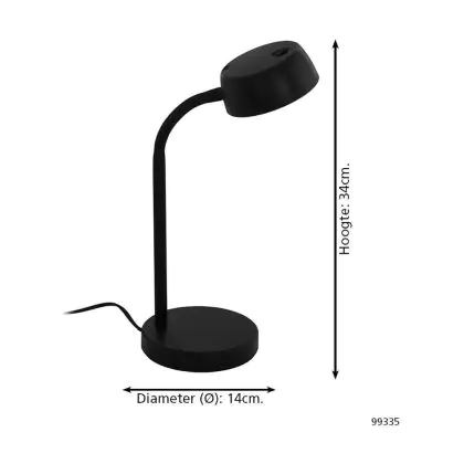 Beschrijving Eglo Tafellamp Cabales Zwart 4.6W 490lm - 830 Warm Wit | IP20