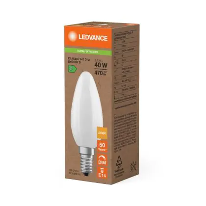 Beschrijving Ledvance Classic LED E14 Kaars Mat 2.5W 470lm - 827 Zeer Warm Wit | Dimbaar - Vervangt 40W