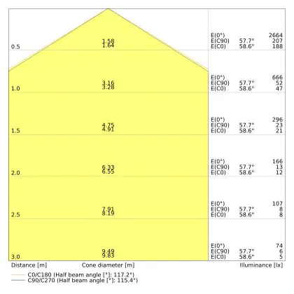 ![]() De kleurcode is een combinatie van de kleurweergave (CRI) en lichtkleur (Kelvin). Het eerste getal is de kleurweergave (1 = zeer slechte kleurweergave, 9 = maximale kleurechtheid). Het tweede en derde cijfer betreft de lichtkleur. Een lamp met kleurcode 830 heeft bijvoorbeeld een goede kleurweergave en straalt een warm wit licht uit (3000K), waar een lamp met de kleurcode 940 een uitstekende CRI heeft en een koel wit licht (4000K) uitstraalt. |