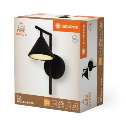 Beschrijving Ledvance LED Decor Wandlamp Fuji Zwart 5W 180lm - 930 Warm Wit| Beste Kleurweergave