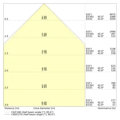 ![]() De kleurcode is een combinatie van de kleurweergave (CRI) en lichtkleur (Kelvin). Het eerste getal is de kleurweergave (1 = zeer slechte kleurweergave, 9 = maximale kleurechtheid). Het tweede en derde cijfer betreft de lichtkleur. Een lamp met kleurcode 830 heeft bijvoorbeeld een goede kleurweergave en straalt een warm wit licht uit (3000K), waar een lamp met de kleurcode 940 een uitstekende CRI heeft en een koel wit licht (4000K) uitstraalt. |