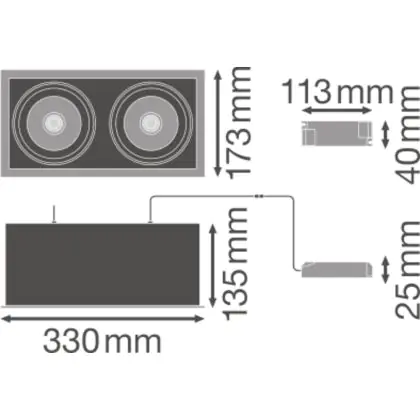 Beschrijving Ledvance LED Spot Vierkant Multi Kantelbaar Zwart-Wit 2x30W 5400lm 38D - 830 Warm Wit | Zaagmaat 320x160mm