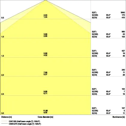 ![]() De kleurcode is een combinatie van de kleurweergave (CRI) en lichtkleur (Kelvin). Het eerste getal is de kleurweergave (1 = zeer slechte kleurweergave, 9 = maximale kleurechtheid). Het tweede en derde cijfer betreft de lichtkleur. Een lamp met kleurcode 830 heeft bijvoorbeeld een goede kleurweergave en straalt een warm wit licht uit (3000K), waar een lamp met de kleurcode 940 een uitstekende CRI heeft en een koel wit licht (4000K) uitstraalt. |