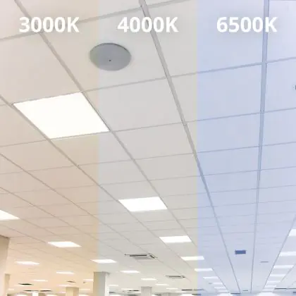 Je kunt bij dit zuinige Noxion LED paneel kiezen voor drie soorten kleurtemperaturen (Kelvin). Bij dit exemplaar betreft dat 6500 Kelvin, en dat komt overeen met (natuurlijk) daglicht. Zoals de naam al aangeeft geeft deze lichtkleur dus licht zoals dat van buiten komt. Onder ander een tandarts en chirurg heeft tijdens zijn werkzaamheden zeer veel baat bij een LED paneel van 6500K. Alle details moeten immers zeer goed zichtbaar zijn. Datzelfde geldt voor plekken als een drukkerij, laboratorium of een opslagruimte met materialen van diverse (felle) kleuren. Je kunt bij dit LED paneel ook kiezen voor 3000 Kelvin (warm wit licht) of 4000 Kelvin (koel wit licht).