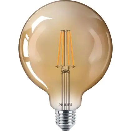 Deze lampen uit de Philips Classic serie hebben een retro look. Hiermee bedoelen we dat ze doen denken aan een oudere lamp, zoals een gloeilamp. Het LED filament geeft hetzelfde effect als dat van de koperdraad in een gloeilamp.