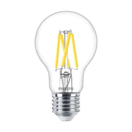 Naast de kleurtemperatuur speelt het uiterlijk van de lamp een belangrijke rol. Ga je voor mat glas of liever helder/gekleurd glas, waardoor je het LED filament (de oranje kooldraad) goed kunt zien? Heb je ook al nagedacht over de vorm en grootte? Deze E27 lamp heeft als vorm: Peer. Ten slotte heb je bij ons een zeer ruime keus aan dimbare E27 LED lampen. Hierbij heb je een LED dimmer nodig. Wil je extra informatie over E27 LED? Lees dan onze blog: Hoe vind ik de juiste E27 lamp?