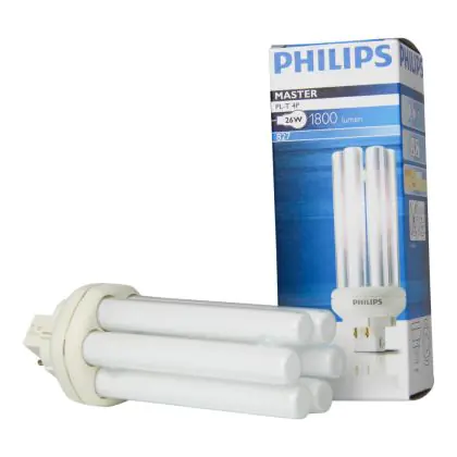 Het is bij de Philips PL-T 4P niet mogelijk om een ander wattage lamp in uw voorschakelapparaat gebruiken dan waarvoor deze bedoeld is. De Philips PL-T 26W 827 4P (MASTER) lamp heeft een lengte van 12,7 cm en heeft een GX24q-3 lampvoet, wat overeenkomt met 4 pinnen.