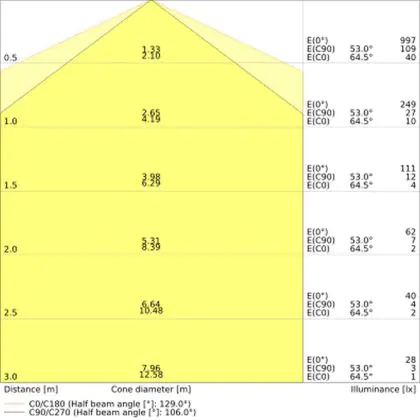 ![]() De kleurcode is een combinatie van de kleurweergave (CRI) en lichtkleur (Kelvin). Het eerste getal is de kleurweergave (1 = zeer slechte kleurweergave, 9 = maximale kleurechtheid). Het tweede en derde cijfer betreft de lichtkleur. Een lamp met kleurcode 830 heeft bijvoorbeeld een goede kleurweergave en straalt een warm wit licht uit (3000K), waar een lamp met de kleurcode 940 een uitstekende CRI heeft en een koel wit licht (4000K) uitstraalt. |