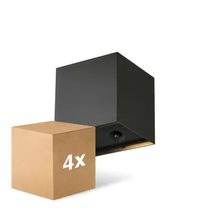 Voordeelpak 4x D'Lite LED Wandlamp Elingen Aluminium Zwart 2.9W 170lm - 830 Warm Wit | IP65 - Werkt Op Batterijen - Lichtsensor